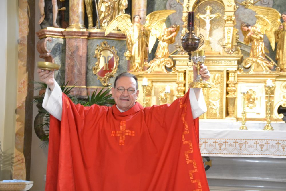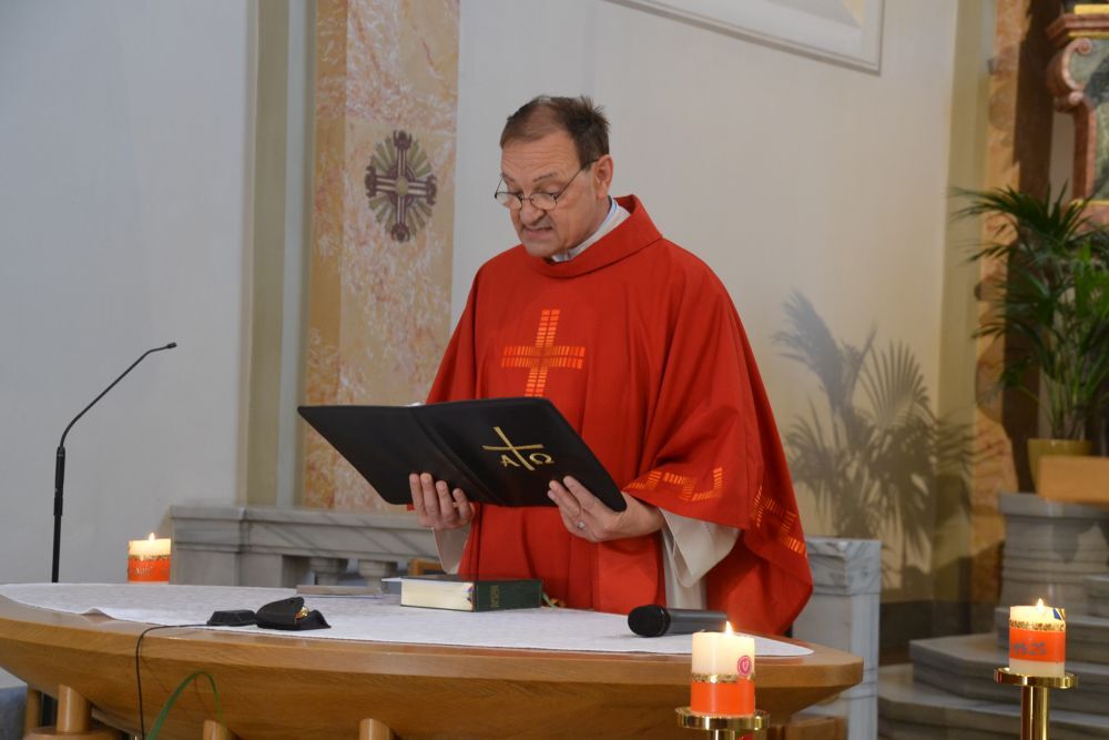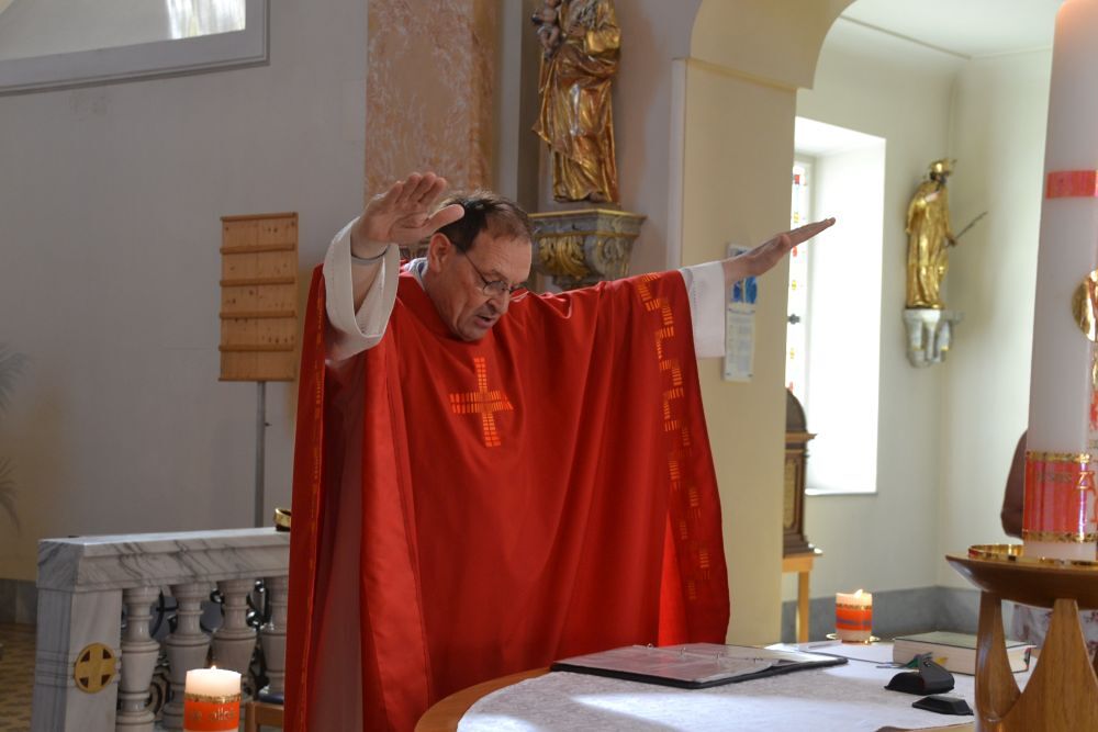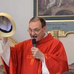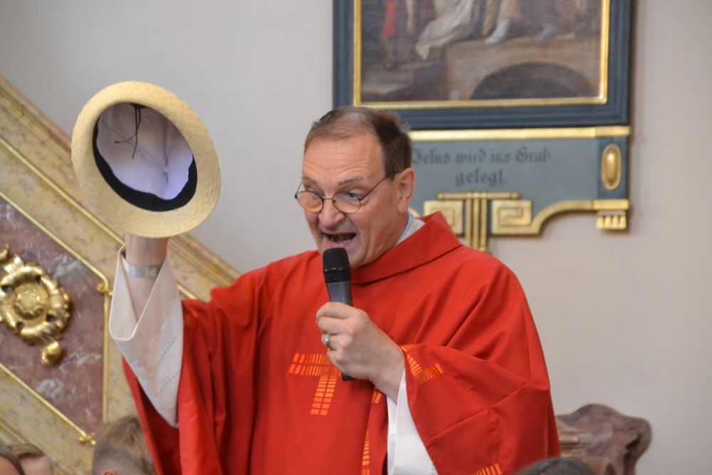 Vikar Gerhard Hatzmann feierte den Gottesdienst unter einem Hut.