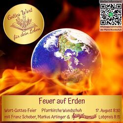Sonntag, 17. August 2025 - Wortgottesfeier in Wundschuh mit Markus Artinger und Franz Schober mit dem Thema "Feuer auf Erden", passend zum Evangelium Lk 12,49-53