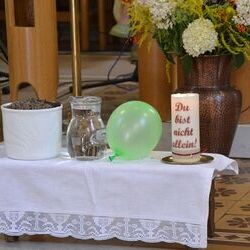 - Markus sprach in seiner Predigt über die vier Grundelemente der Schöpfung - Erde + Wasser + Luft + Feuer