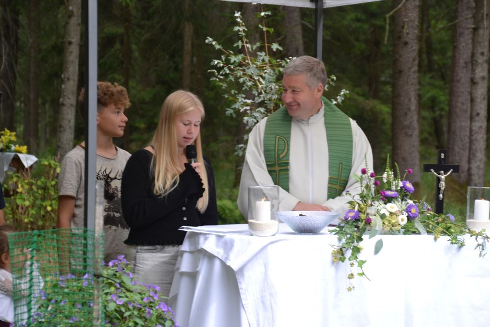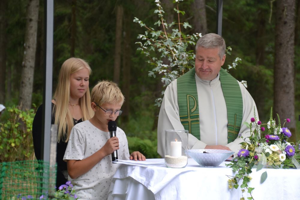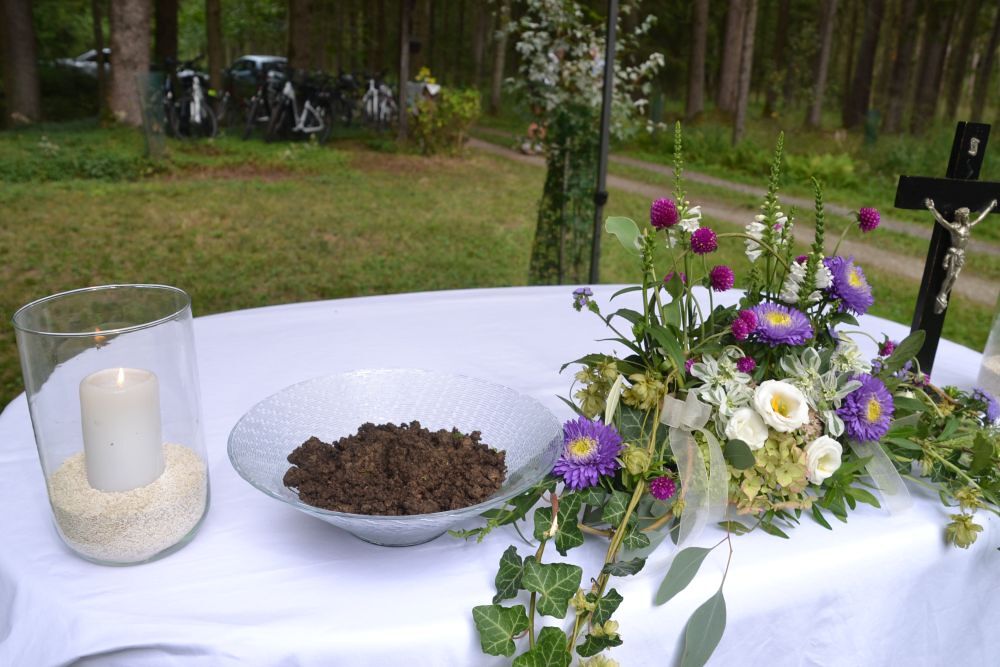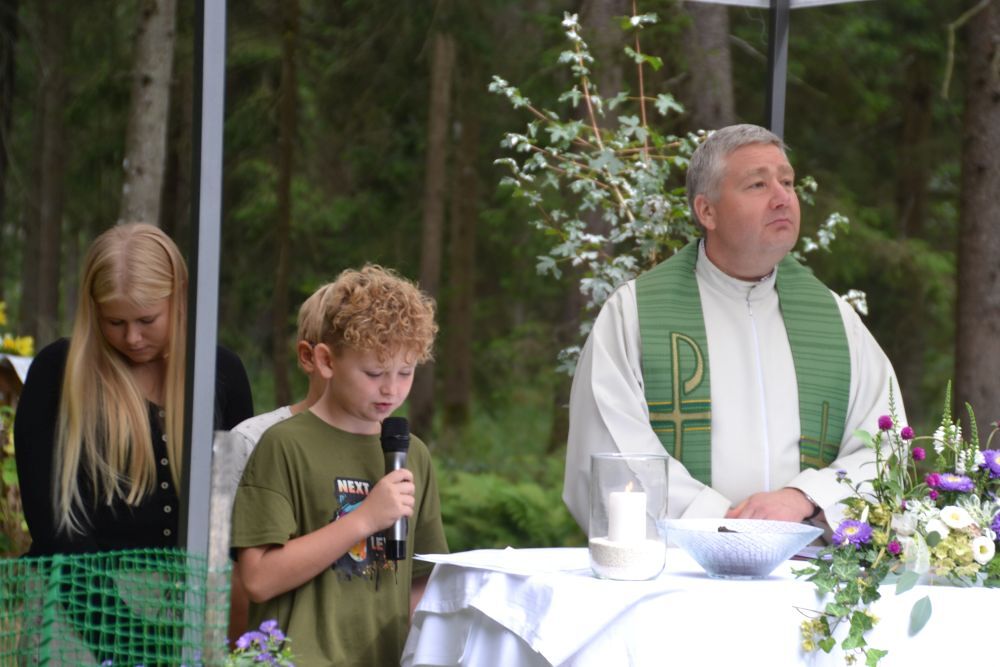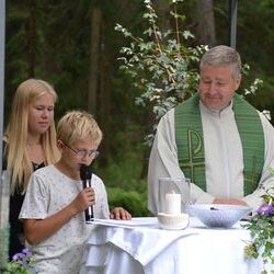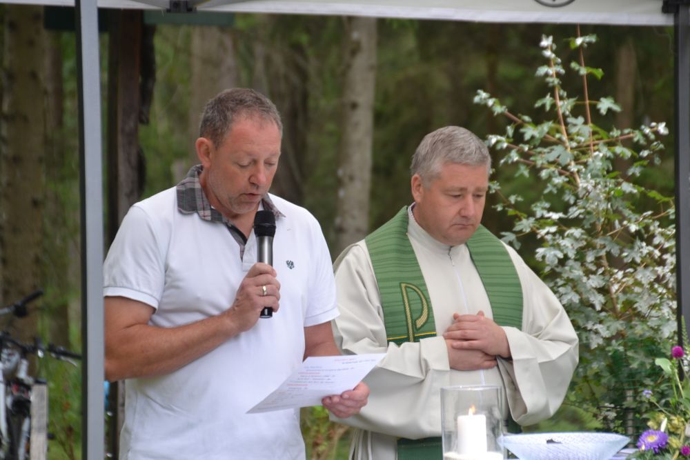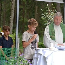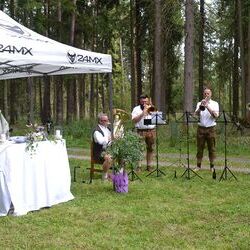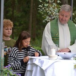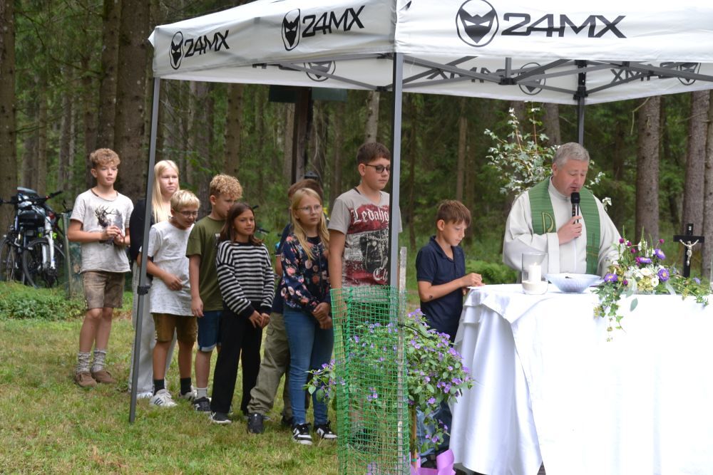 - Pfarrer Claudiu Budau feierte beim sogenannten "Woldteifl-Kreuz" mit vielen Mitfeiernden eine Wortgottesfeier - musikalische Gestaltung durch ein Bläserquartett des Musikvereins der Graz Linien