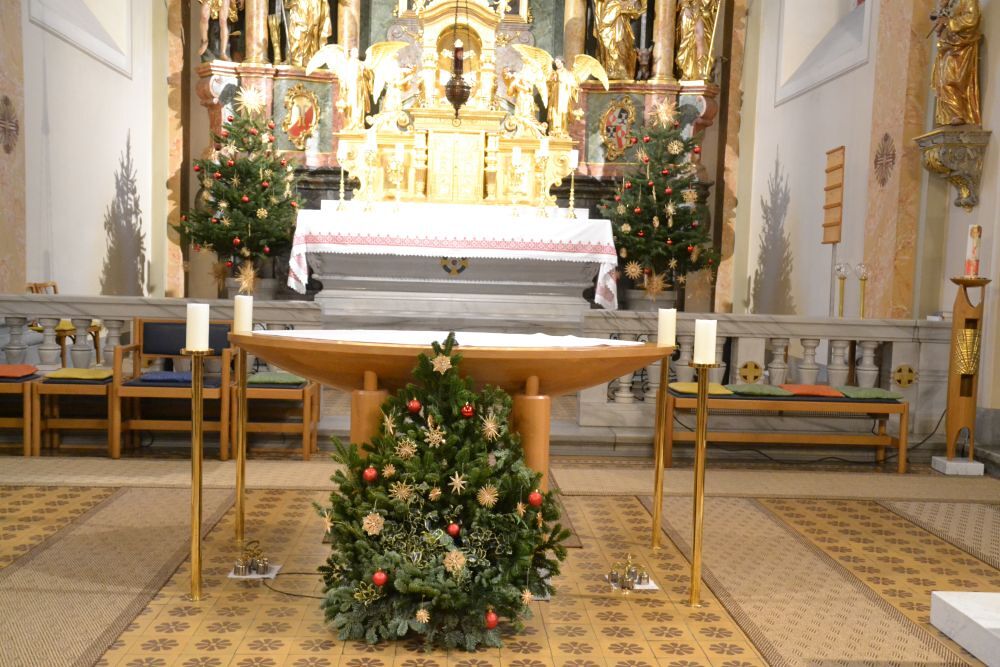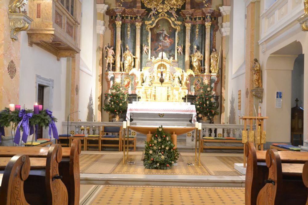 Am vierten Adventsonntag wurde die Pfarrkirche mit kleinen und großen Strohsternen und roten Kugeln weihnachtlich geschmückt.