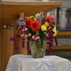 Erntedankgottesdienst im Freien bei windigem Wetter