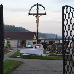 Allerheiligen / Allerseelen in Wundschuh - da es keine gemeinsame Feier mit Gräbersegnung gab, segneten viele Friedhofsbesucher ihr Grab mit dem bereitgestellten Weihwasserfläschchen und dem Segensgebet selbst.